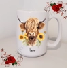 What makes this mug truly special is the option to personalise it with a name of your choice. Imagine the joy on your loved one's face when they receive a mug that not only showcases a charming Highland Cow but also has their name beautifully printed on it! It's a thoughtful gift for birthdays, anniversaries, or just because.