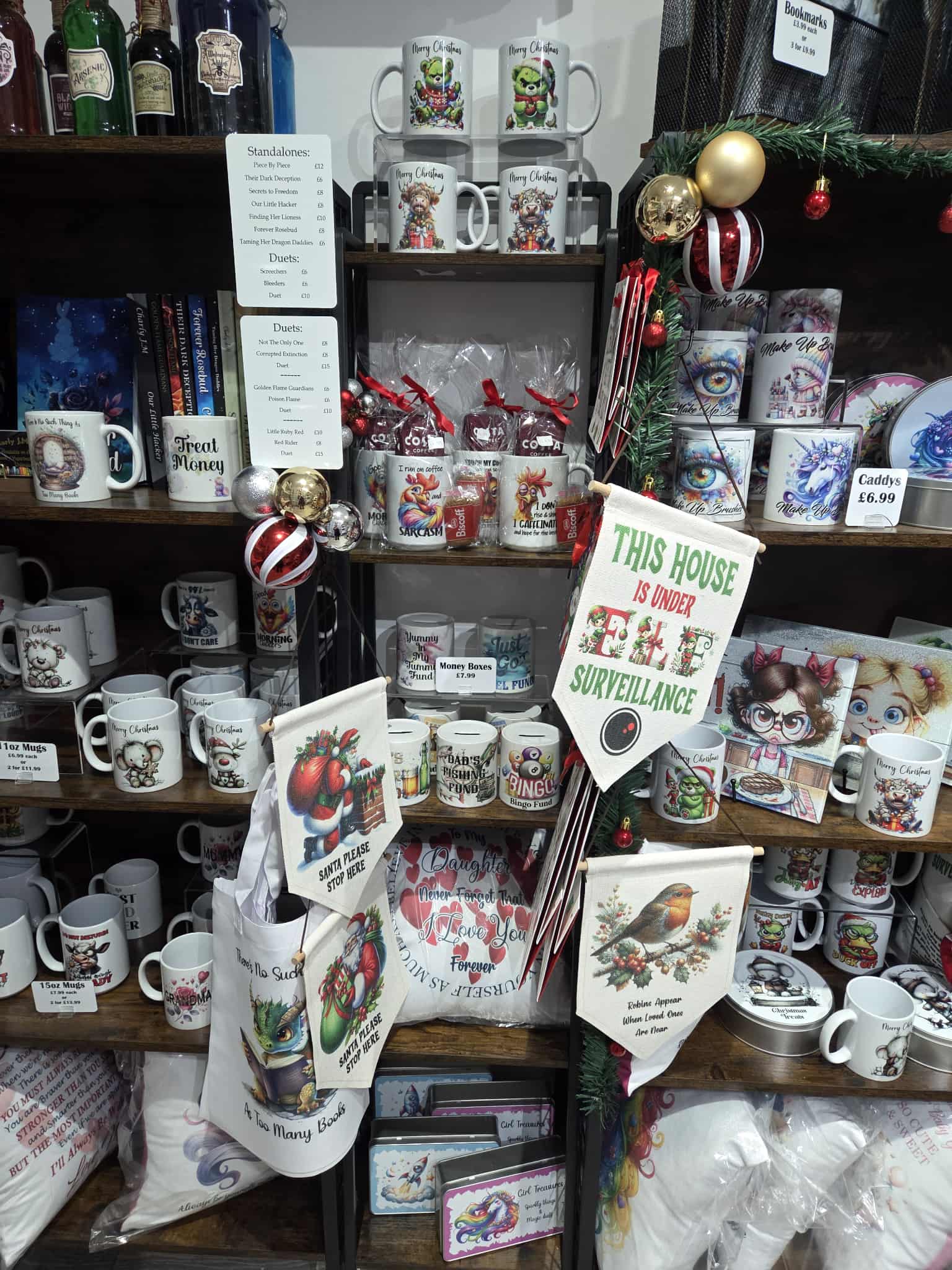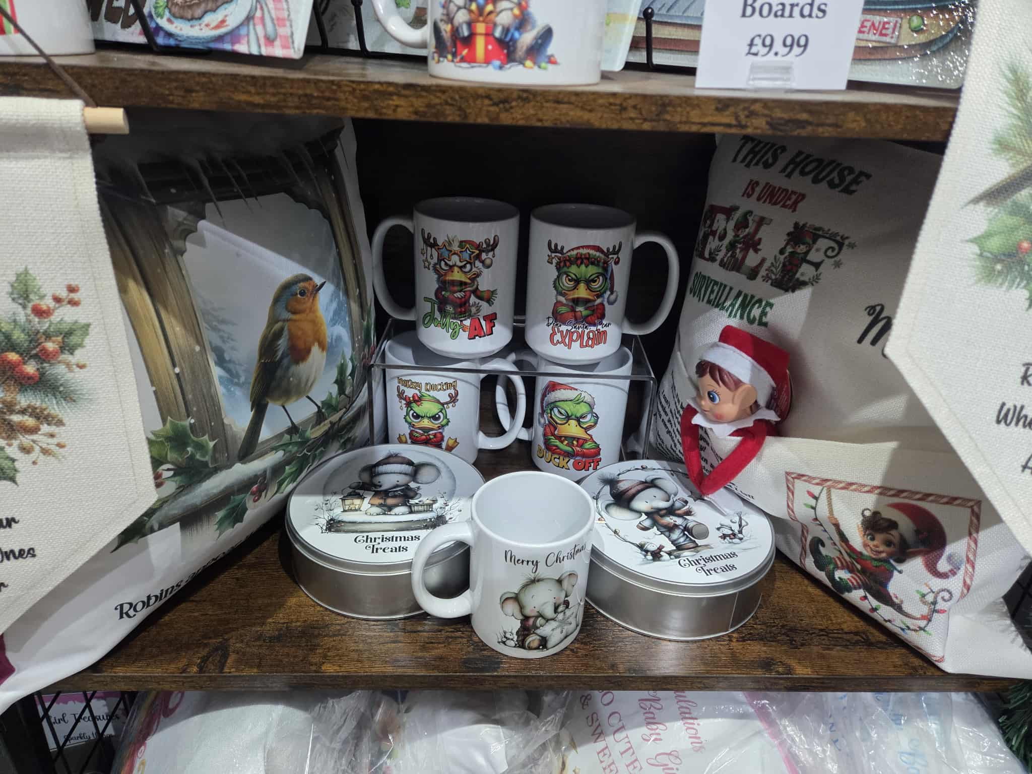 These include our much loved cushions, mugs, make-up brush holders, gift bags, metal treat tins, money boxes and so much more!