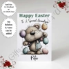 A5 or A4 Personalised Card - Happy Easter - Bear - Any Relation & Name - D.3
