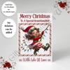 Celebrate the festive season in style with our A5 or A4 Personalised Card. This delightful card is the perfect way to spread holiday cheer to your loved ones, whether it's your son, daughter, or granddaughter, brother, grandson, nephew etc. Imagine their smiles as they receive a card that’s not just any card, but one that’s uniquely tailored just for them!