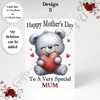 A5 or A4 Personalised Greeting Card - Bear & Hearts - Happy Mother's Day - Mum Mummy etc - D.5