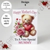 A5 or A4 Personalised Greeting Card - Cute Bear - Happy Mother's Day - Mum Mummy Grandma etc - D.4