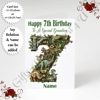A5 or A4 Personalised Greeting Card - Dinosaur - Happy 7th Birthday - Any Relation & Name - D.2