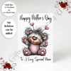 A5 or A4 Personalised Greeting Card - Grey Bear - Happy Mother's Day - Mum Mummy etc - D.9
