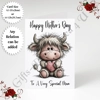 A5 or A4 Personalised Greeting Card - Highland Cow - Happy Mother's Day - Mum Mummy etc - D.18