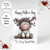 A5 or A4 Personalised Greeting Card - Highland Cow - Happy Mother's Day - Mum Mummy etc - D.21