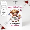 A5 or A4 Personalised Greeting Card - Highland Cow - Happy Mother's Day - Mum Mummy etc - D.6
