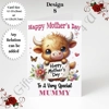 A5 or A4 Personalised Greeting Card - Highland Cow - Happy Mother's Day - Mum Mummy etc - D.8