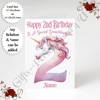 A5 or A4 Personalised Greeting Card - Unicorn - Happy 2nd Birthday - Any Relation & Name - D.3