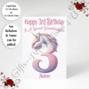 A5 or A4 Personalised Greeting Card - Unicorn - Happy 3rd Birthday - Any Relation & Name - D.3