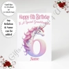 A5 or A4 Personalised Greeting Card - Unicorn - Happy 6th Birthday - Any Relation & Name - D.3