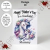 A5 or A4 Personalised Greeting Card - Unicorns - Happy Mother's Day - Mum Mummy Grandma etc - D.10