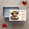 Personalised Metal Storage Tin - Christmas Highland Cow - Name or Relations Sweet Treats Tin - D.4