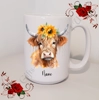 What makes this mug truly special is the option to personalise it with a name of your choice. Imagine the joy on your loved one's face when they receive a mug that not only showcases a charming Highland Cow but also has their name beautifully printed on it! It's a thoughtful gift for birthdays, anniversaries, or just because.