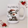 Personalised Mug 11oz & 15oz sizes - Whimsical Reindeer - Merry Christmas Name - D.6