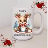 Personalised Mug 11oz & 15oz sizes - Reindeer & Hot Chocolate - Name's Christmas Mug - Design 1