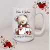 Personalised Mug 11oz & 15oz sizes - Valentine's Day / Love - Bear & Hearts - Names - D.1