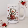 Personalised Mug 11oz & 15oz sizes - Valentine's Day / Love - Bear & Hearts - Names - D.6