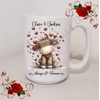Personalised Mug 11oz & 15oz sizes - Valentine's Day / Love - Highland Cow - Names - D.2