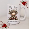 Personalised Mug 11oz & 15oz sizes - Valentine's Day / Love - Highland Cow - Names - D.3
