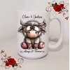 Personalised Mug 11oz & 15oz sizes - Valentine's Day / Love - Highland Cow - Names - D.7